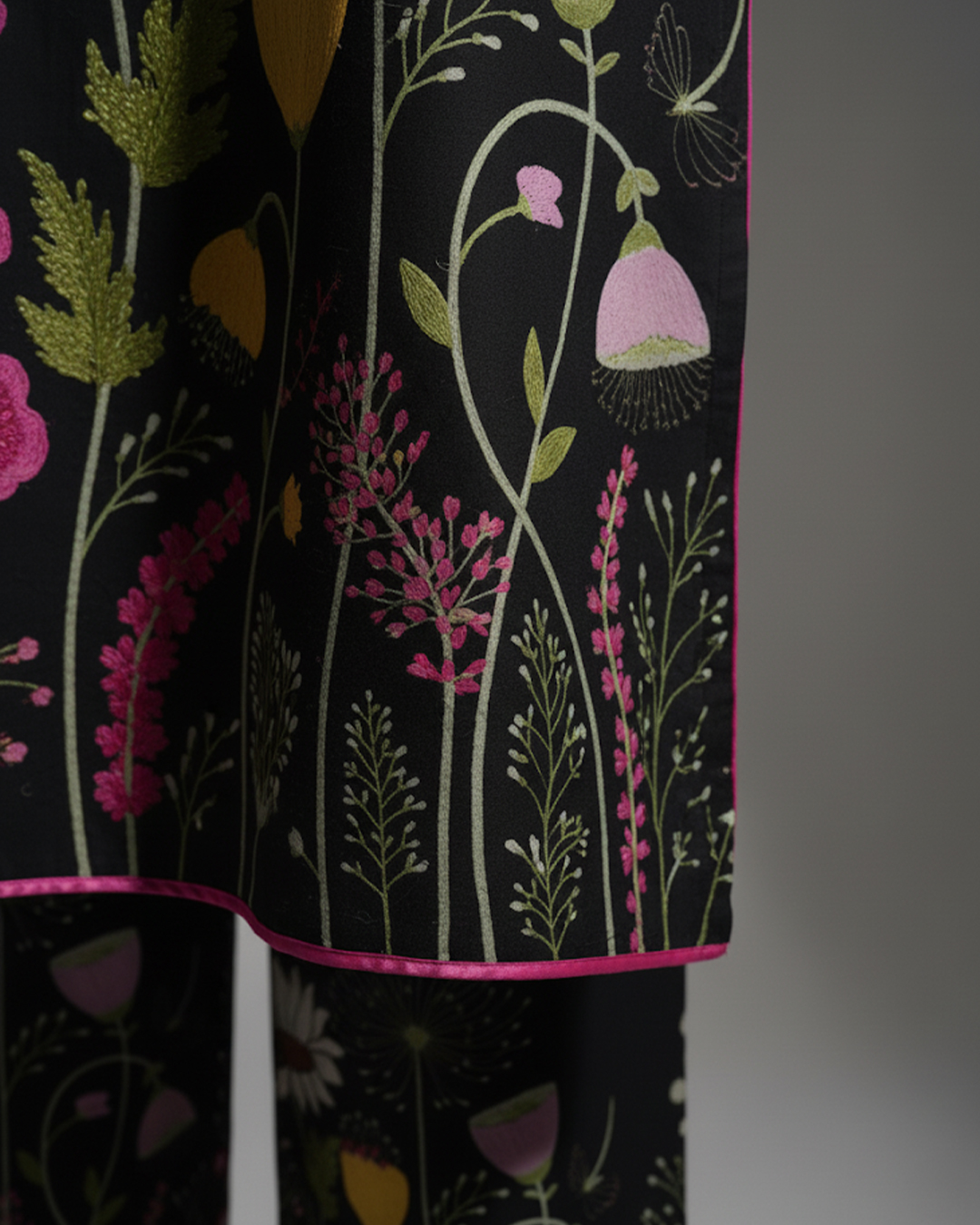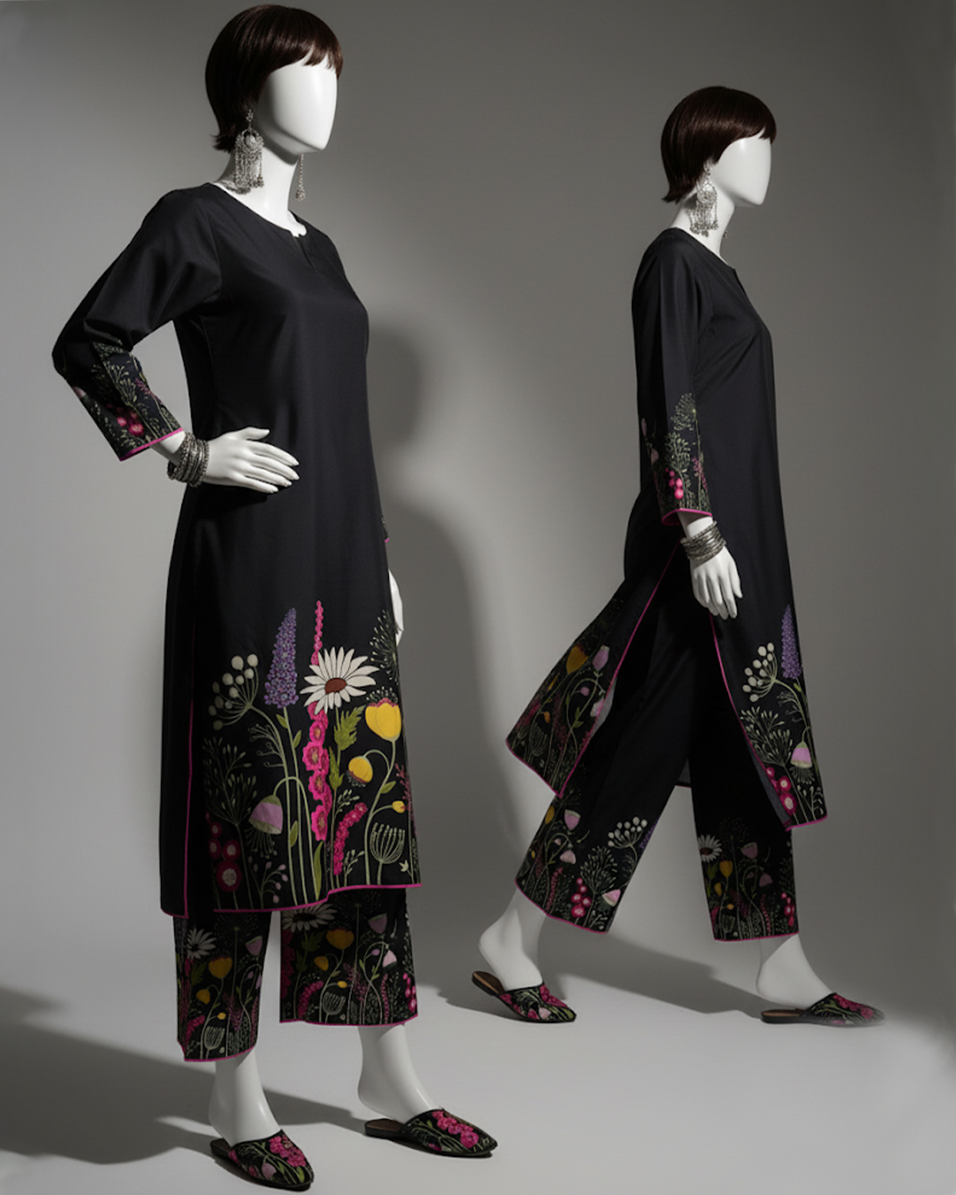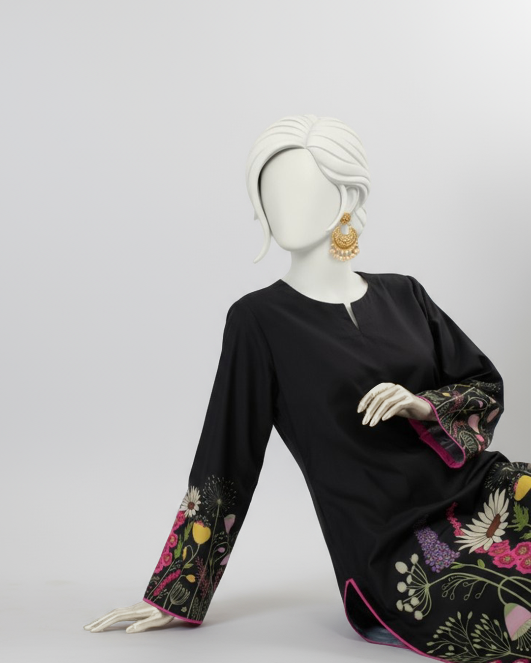 Black Aroura Swiss Lawn Co-ord Suit with Multicolor Floral Print – Amber Collection | Wearmahenoor
