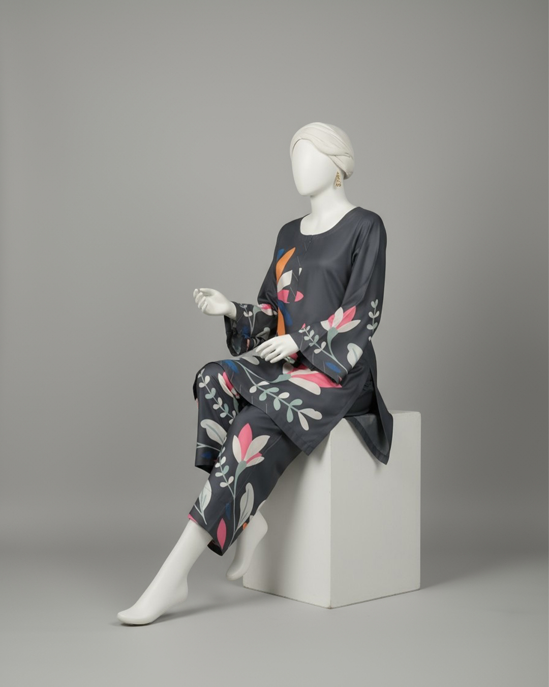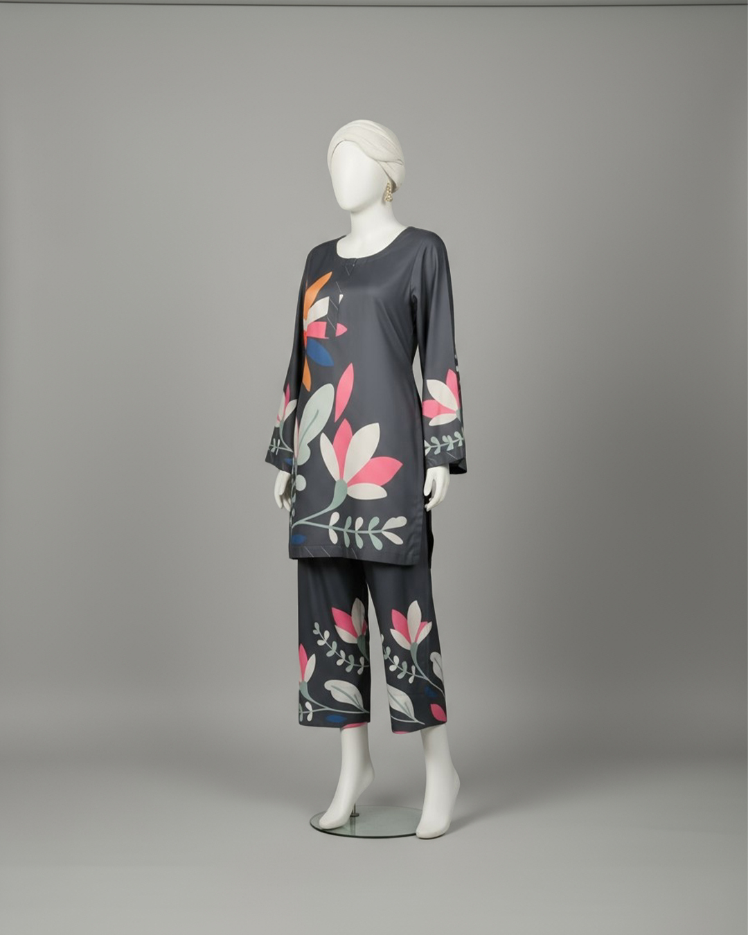 Charcoal Blue With Radiant Florals Co-ord Stitched