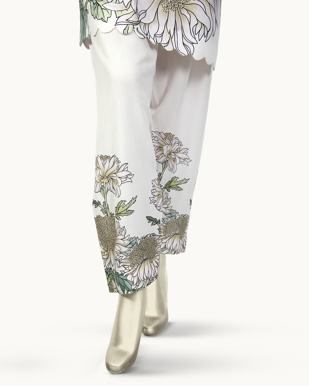 Cream With Green & Gold Florals Co-ord Stitched