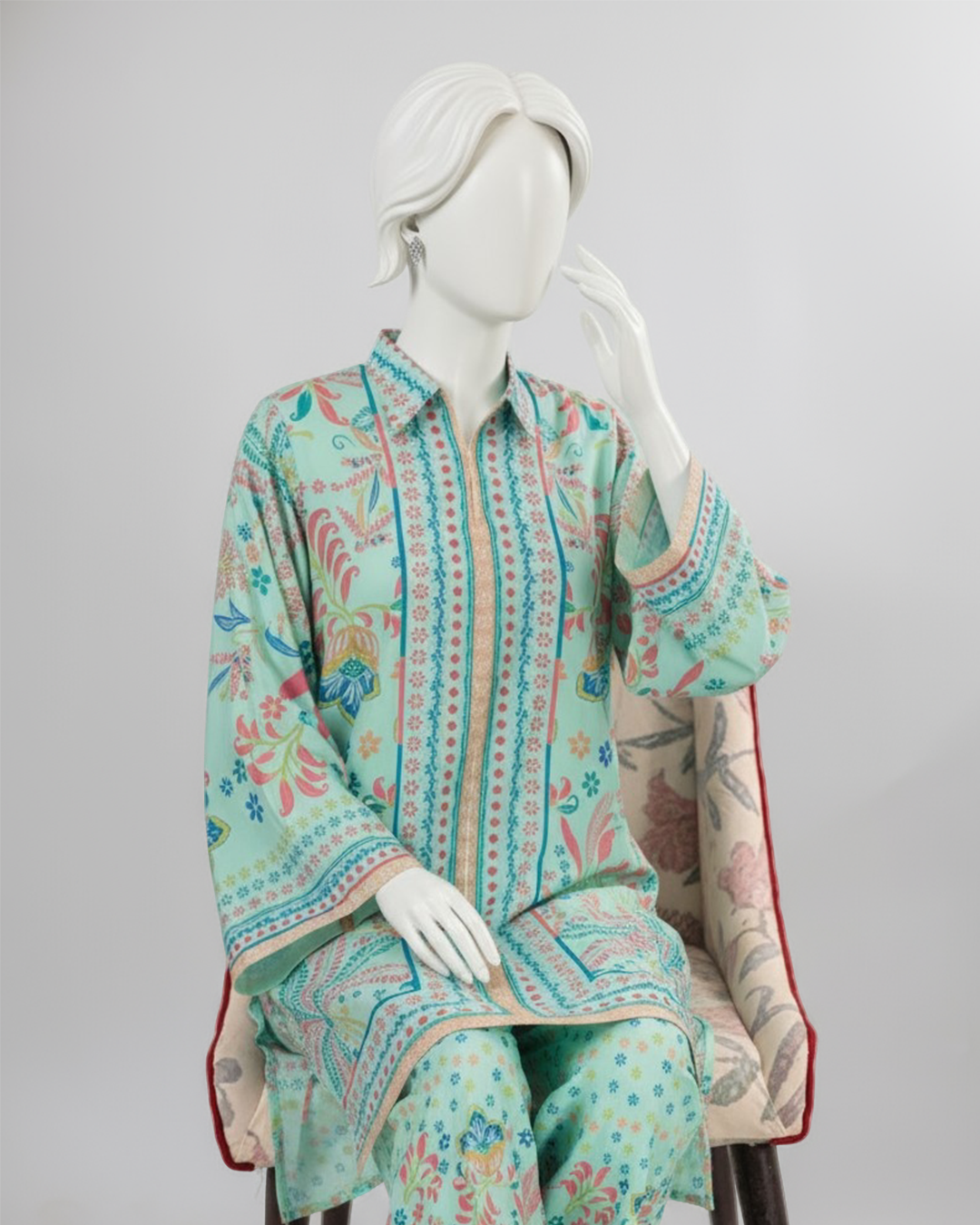 Elevate your style with this refreshing Florenza Diamond Swiss Lawn suit from the Amber Collection by Waermahenoor. Crafted from premium Swiss lawn fabric, this elegant co-ord features delicate multicolor floral prints, adding a vibrant yet graceful charm to your look.